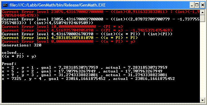 ofcourse this could be altered so that once the solution is found, it continues to evolve and promote shorter formulas.