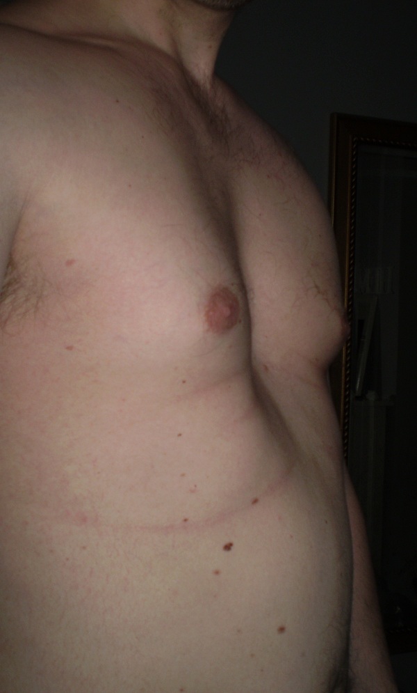 The steel bar was inserted just below my man-boobs (where the tape is).